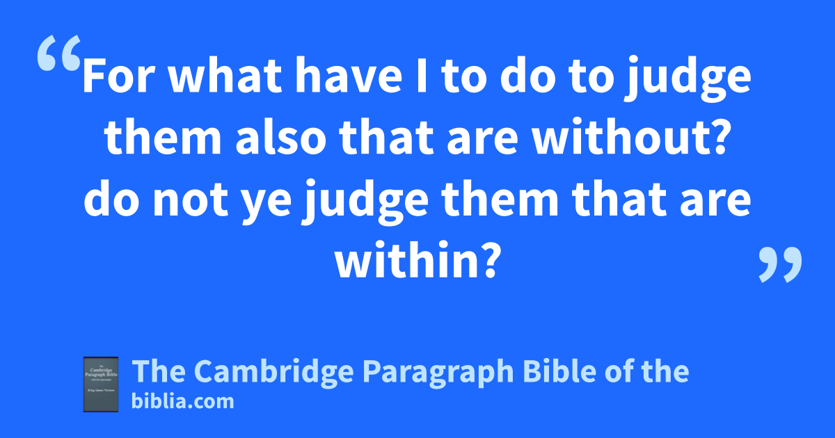 9 I wrote unto you in tan epistle not to company with fornicators: 10 uyet not altogether with the fornicators wof this world, or with xythe covetous, or yzextortioners, or with yidolaters; for then must zzye needs go out of the world. 11 But tnow I have written unto you not to keep company, aif any man that is called a brother be a tfornicator, or ycovetous, or an yidolater, or a brailer, or a cdrunkard, or an yextortioner; with such a one no not to eat. 12 For what have I to do to judge dthem also that are without? do not ye judge ethem that are within? 13 But dthem that are without God judgeth. Therefore fput away from among yourselves that wicked person.