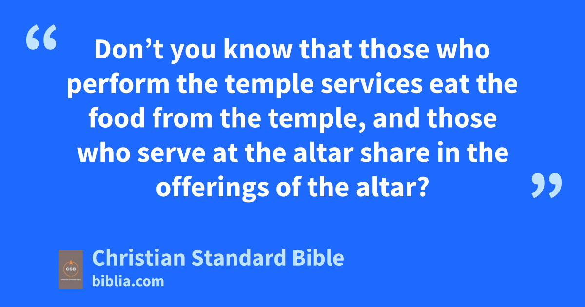 13 Don’t you know that those who perform the temple services eat the food from the temple, and those who serve at the altarad share in the offerings of the altar? 14 In the same way, the Lord has commanded that those who preach the gospel should earn their living by the gospel.ae
