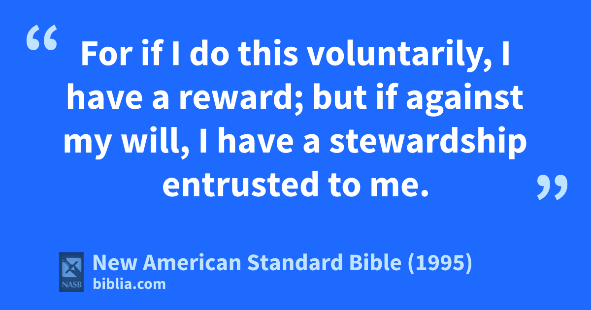 17 For if I do this voluntarily, I have a areward; but if against my will, I have a bstewardship entrusted to me.