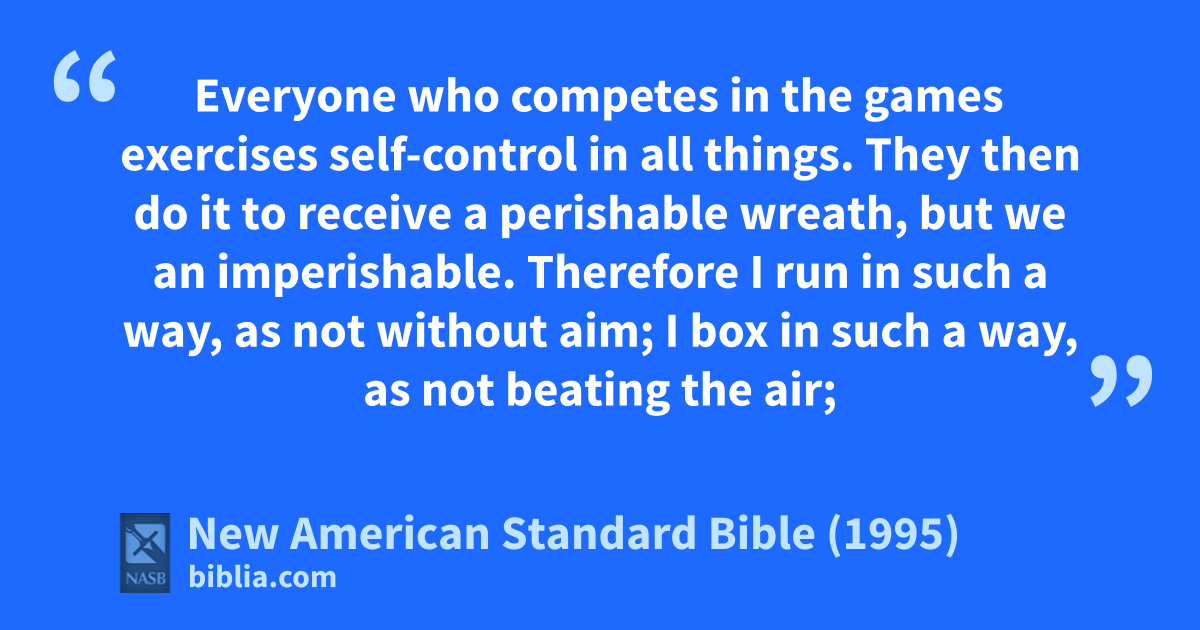 25 Everyone who acompetes in the games exercises self-control in all things. They then do it to receive a perishable bwreath, but we an imperishable.