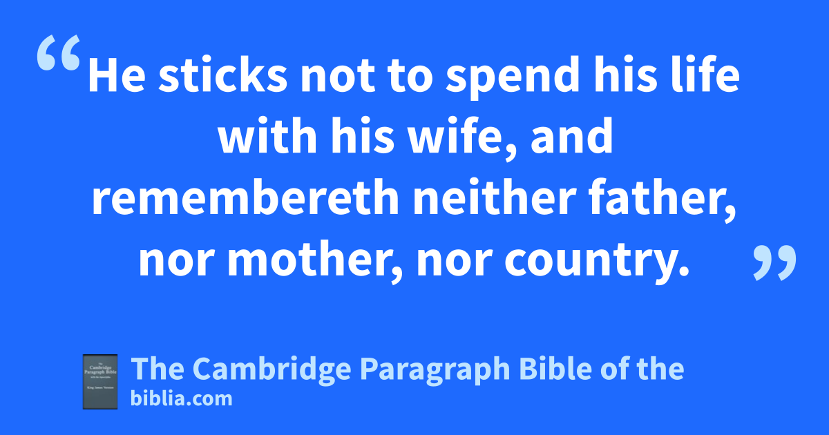 13 Then the third, who had spoken of women, and of the truth, (this was dZorobabel) began to speak. 14 O ye men, it is not the great king, nor the multitude of men, neither is it wine, that * excelleth; who is it then that ruleth them, or hath the lordship over them? are they not women? 15 Women have borne the king and all the people that bear rule by sea and land. 16 Even of them came they: and they nourished them up that planted the vineyards, from whence the wine cometh. 17 eThese also make garments for men; these bring glory unto men; and without women cannot men be. 18 Yea, and if men have gathered together gold and silver, or any other goodly thing, do they not love a woman which is comely in favour and beauty? 19 And letting all those things go, do they not gape, and even fwith open mouth fix their eyes fast on her; and have not all men more desire unto her than unto silver or gold, or any goodly thing whatsoever? 20 gA man leaveth his own father that brought him up, and his own country, and cleaveth unto his wife. 21 He sticks not to spend his life with his wife, and remembereth neither father, nor mother, nor country. 22 By this also you must know that women have dominion over you: do ye not labour and toil, and give and bring all to the woman? 23 Yea, a man taketh his sword, and goeth his way to rob and to steal, to sail upon the sea and upon rivers; 24 and looketh upon a lion, and goeth in the darkness; and when he hath stolen, spoiled, and robbed, he bringeth it to his love. 25 Wherefore a man loveth his wife better than father or mother. 26 Yea, many there be that have * run out of their wits for women, and hbecome servants for their sakes. 27 Many also have perished, have erred, and sinned, for women. 28 And now do ye not believe me? is not the king great in his power? do not all regions fear to touch him? 29 Yet did I see him and Apame the king’s concubine, the daughter of the admirable * Bartacus, sitting iat the right hand of the king, 30 and taking the crown from the king’s head, and setting it upon her own head; she also kstrooke the king with her left hand. 31 And yet * for all this the king fgaped and gazed upon her with open mouth: if she laughed upon him, he laughed also: but if she took any displeasure at him, the king was fain to flatter, that she might * be reconciled to him again. 32 O ye men, how can it be but women should be strong, seeing they do thus?