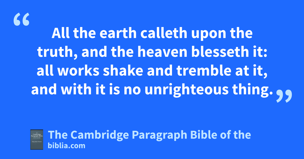 33 Then the king and the lprinces looked one upon another: so he began to speak of the truth. 34 O ye men, are not women strong? great is the earth, high is the heaven, swift is the sun in his course, for he compasseth the heavens round about, and fetcheth his course again to his own place in one day. 35 Is he not great that maketh these things? therefore great is the truth, and stronger than all things. 36 All the earth * calleth upon the truth, and the heaven blesseth it: all works shake and tremble at it, and with it is no unrighteous thing. 37 Wine is wicked, the king is wicked, women are wicked, all the children of men are wicked, and such are all their wicked works; and mthere is no truth in them; in their unrighteousness also they shall perish. 38 As for the truth, it endureth, and is always strong; it liveth and conquereth for evermore. 39 With her there is no naccepting of persons or rewards; but she doeth the things that are just, and refraineth from all unjust and wicked things; and all men odo well like of her works. 40 Neither in her judgment is any unrighteousness; and she is the strength, pkingdom, power, and majesty, of all ages. Blessed be qthe God of truth.