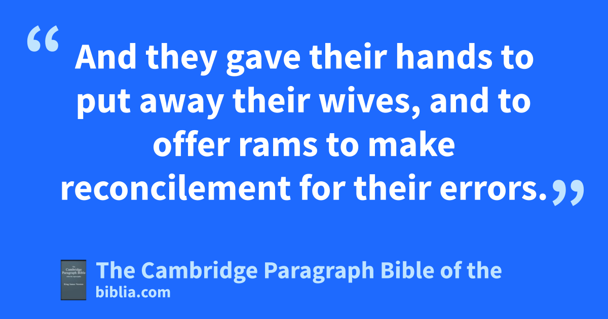 18 And of the priests that were come together, and had strange wives, there were found; 19 of the sons of Jesus the son of Josedec, and his brethren; eMatthelas, and Eleazar, and fJoribus, and gJoadanus. 20 And they gave their hands to put away their wives, and to offer * rams to make reconcilement for their * ggerrors. 21 And of the sons of Emmer; Ananias, and Zabdeus, and hEanes, and iSameius, and jHiereel, and kAzarias. 22 And of the sons of lPhaisur; Elionas, Massias, Ismael, and Nathanael, and mOcidelus, and nTalsas.