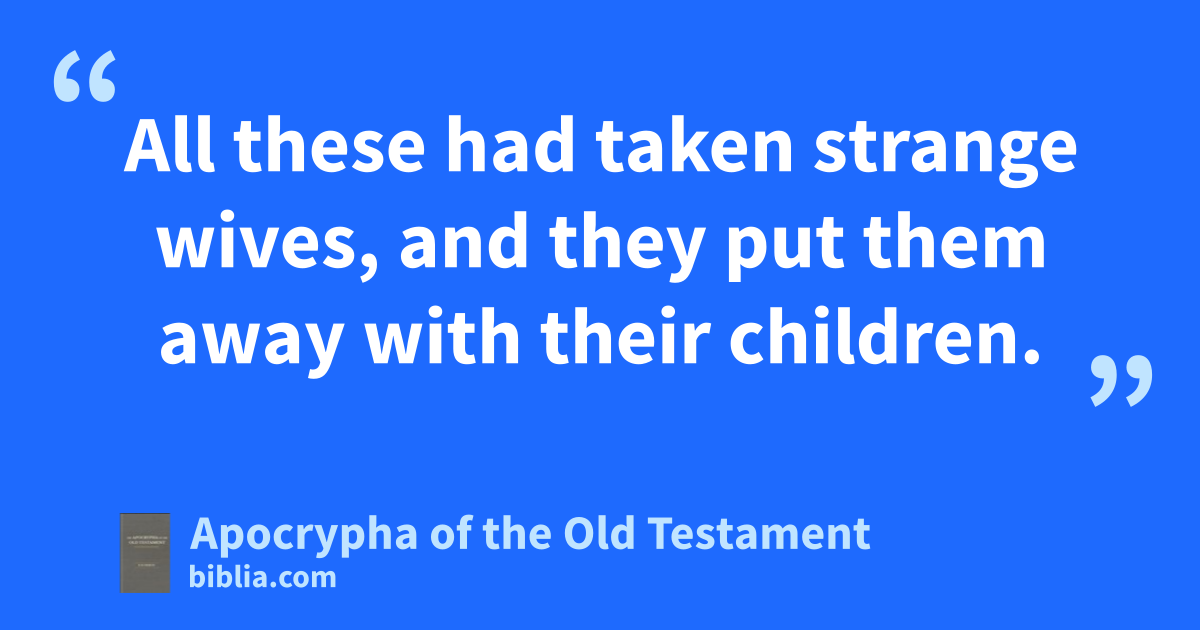 5 And in three days were all they of the tribe of Judah and Benjamin gathered together at Jerusalem: this was the ninth month, on the twentieth day of the month. 6 And all the multitude sat together trembling in the broad place before the temple because of the present foul weather. 7 So Esdras arose up, and said unto them, Ye have transgressed the law and married strange wives, thereby to increase the sins of Israel. 8 And now make confession and give glory unto the Lord, the God of our fathers, and do his will, 9 and separate yourselves from the heathen of the land, and from the strange women. 10 Then cried the whole multitude, and said with a loud voice, Like as thou hast spoken, so will we do. 11 But forasmuch as the multitude is great, and it is foul weather, so that we cannot stand without, and this is not a work of one day or two, seeing our sin in these things is spread far: 12 therefore let the rulers of the multitude stay, 13 and let all them of our habitations that have strange wives come at the time appointed, and with them the rulers and judges of every place, till we turn away the wrath of the Lord from us for this matter. 14 Then Jonathan the son of Azael and Ezekias the son of Thocanus accordingly took the matter upon them: and Mosollamus and Levis and Sabbateus were assessors to them. 15 And they that were of the captivity did according to all these things.