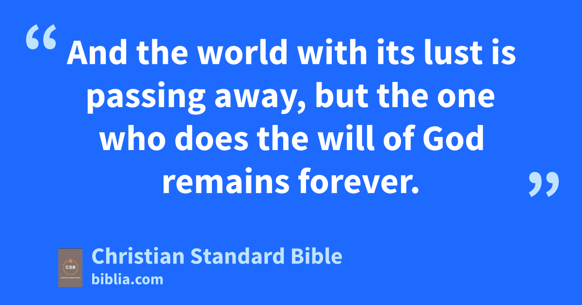 15 Do not love the worldao or the things in the world. If anyone loves the world, the love of the Father is not in him. 16 For everything in the world—the lust of the flesh,ap the lust of the eyes,aq and the pridear in one’s possessions—is not from the Father, but is from the world. 17 And the world with its lust is passing away,a but the one who does the will of Godb remains forever.c