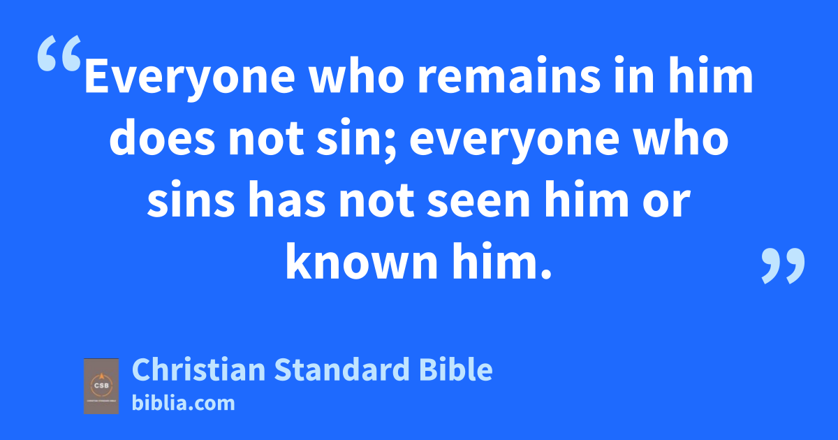 4 Everyone who commits sin practices lawlessness; and sin is lawlessness. 5 You know that he was revealed so that he might take away sins,C,y and there is no sin in him.z 6 Everyone who remains in himaa does not sin;D,ab everyone who sinsE has not seen him or known him.