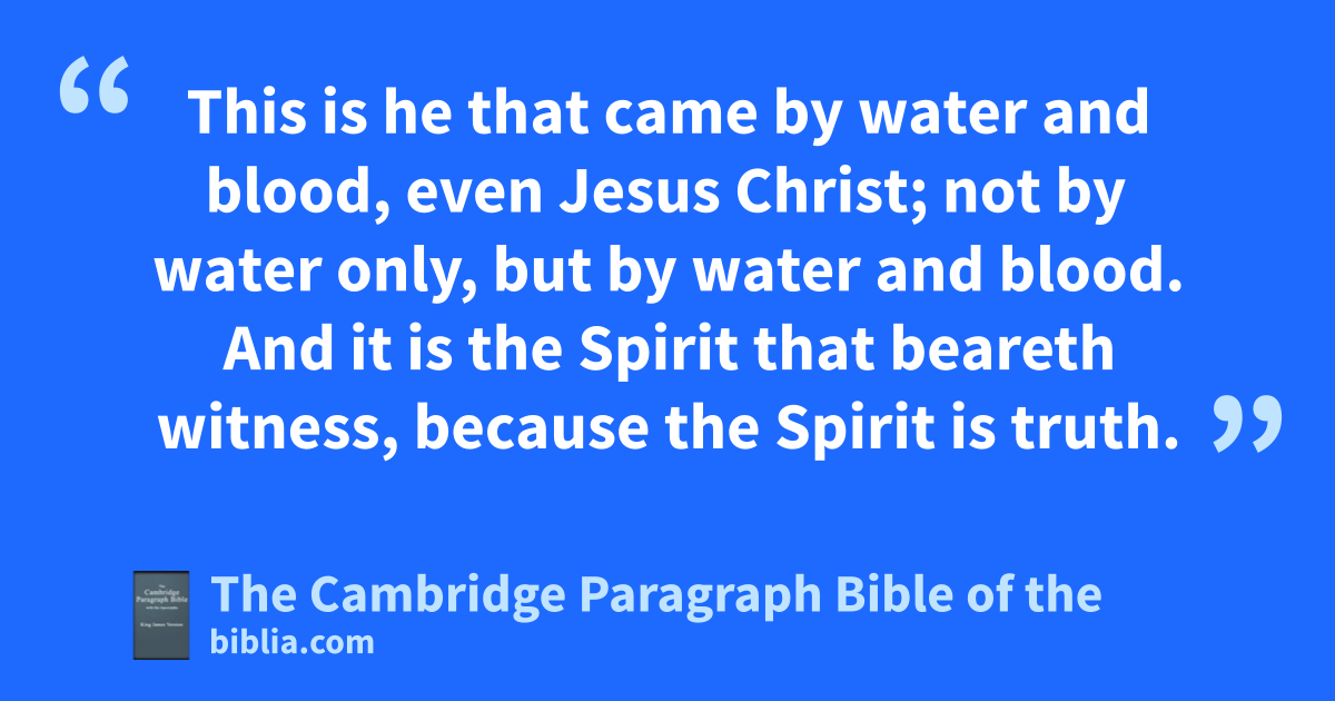 V. Whosoever abelieveth that bJesus is the Christ is cborn of God: and devery one that loveth him that begat loveth him also that is begotten of him. 2 By this we know that we love ethe children of God, when we love God, and fkeep his commandments. 3 For gthis is the love of God, that we fkeep his commandments: and hhis commandments are not grievous. 4 For whatsoever is born of God iovercometh the world: and jthis is the victory that overcometh the world, even our faith. 5 Who is he that iovercometh the world, but jhe that believeth kthat Jesus is the Son of God? 6 This is he that came lby water and lblood, even Jesus Christ; not mby water only, but by water and blood. And nit is the Spirit that beareth witness, because the Spirit is truth. 7 For there are three that bear record in heaven, the Father, the Word, and the Holy Ghost: and these three are one. 8 And there are three that bear witness in earth, othe Spirit, and lthe water, and lthe blood: and these three agree in one. 9 pIf we receive the witness of men, qthe witness of God is greater: for this is the witness of God rwhich he hath testified of his Son. 10 He that believeth on the Son of God shath the witness in himself: he that believeth not God thath made him a liar; because he believeth not the record that God gave of his Son. 11 And this is the record, that God hath given to us ueternal life, and vthis life is in his Son. 12 wHe that xhath the Son hath life; and he that hath not the Son of God hath not life.