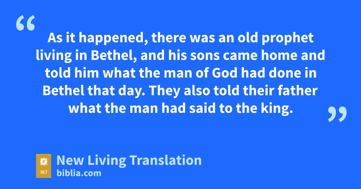 11 As it happened, there was an old prophet living in Bethel, and his sons* came home and told him what the man of God had done in Bethel that day. They also told their father what the man had said to the king. 12 The old prophet asked them, “Which way did he go?” So they showed their father* which road the man of God had taken. 13 “Quick, saddle the donkey,” the old man said. So they saddled the donkey for him, and he mounted it.