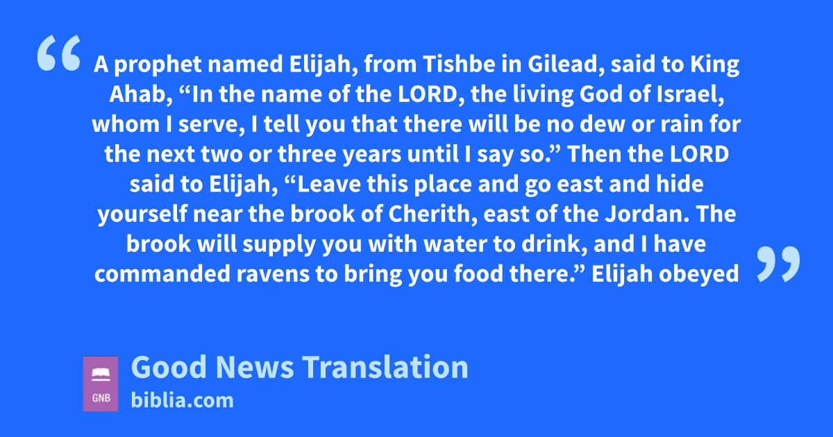 5 Elijah obeyed the Lord’s command, and went and stayed by the brook of Cherith. 6He drank water from the brook, and ravens brought him bread and meat every morning and every evening. 7After a while the brook dried up because of the lack of rain.