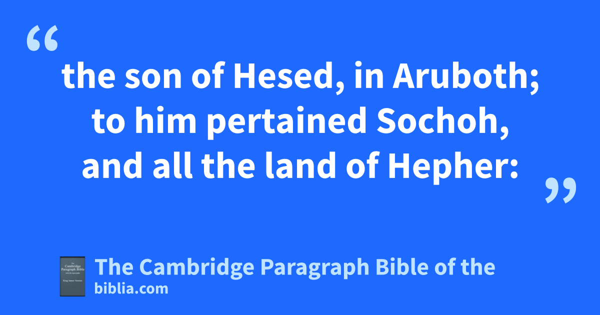 IV. So king Solomon was king over all Israel. 2 And these were the princes which he had; Azariah the son of Zadok * the priest, 3 Elihoreph and Ahiah, the sons of aShisha, * scribes; Jehoshaphat the son of Ahilud, the * recorder. 4 And bBenaiah the son of Jehoiada was over the host: and Zadok and cAbiathar were the priests: 5 and Azariah the son of Nathan was over dthe officers: and Zabud the son of Nathan was eprincipal officer, and fthe king’s friend: 6 and Ahishar was over the household: and gAdoniram the son of Abda was over the * tribute. 7 And Solomon had twelve dofficers over all Israel, which provided victuals for the king and his household: each man his month in a year made provision. 8 And these are their names: * The son of Hur, in hmount Ephraim: 9 * the son of Dekar, in Makaz, and in iShaalbim, and jBeth-shemesh, and Elon-beth-hanan: 10 * the son of Hesed, in Aruboth; to him pertained kSochoh, and all the land of lHepher: 11 * the son of Abinadab, in all mthe region of Dor; which had Taphath the daughter of Solomon to wife: 12 Baana the son of nAhilud; to him pertained oTaanach and oMegiddo, and all pBeth-shean, which is by qZartanah beneath rJezreel, from pBeth-shean to sAbel-meholah, even unto the place that is beyond tJokneam: 13 * the son of Geber, in uRamoth-gilead; to him pertained vthe towns of Jair the son of Manasseh, which are in Gilead; to him also pertained wthe region of Argob, which is in Bashan, threescore great cities wwith walls and brasen bars: 14 Ahinadab the son of xIddo had * Mahanaim: 15 yAhimaaz was in Naphtali; he also took Basmath the daughter of Solomon to wife: 16 Baanah the son of zHushai was in Asher and in Aloth: 17 Jehoshaphat the son of Paruah, in Issachar: 18 aShimei the son of Elah, in Benjamin: 19 Geber the son of Uri was in the country of Gilead, in bthe country of Sihon king of the Amorites, and of Og king of Bashan; and he was the only officer which was in the land. 20 Judah and Israel were many, cas the sand which is by the sea in multitude, eating and drinking, and making merry.