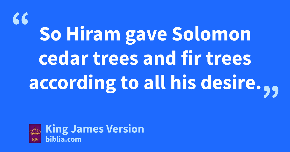 5 And ||Hiram king of aTyre sent his servants unto Solomon; for he had heard that they had anointed him king in the room of his father: bfor Hiram was ever a lover of David. 2 And cSolomon sent to Hiram, saying, 3 Thou knowest how that David my father could not build an house unto the name of the Lord his God dfor the wars which were about him on every side, until the Lord put them under the soles of his feet. 4 But now the Lord my God hath given me erest on every side, so that there is neither adversary nor evil foccurrent. 5 And, behold, I †purpose to build an house unto the name of the Lord my God, as the Lord spake unto David my father, saying, Thy son, whom I will set upon thy throne in thy room, ghe shall build an house unto my name. 6 Now therefore command thou that they hew me cedar trees out of Lebanon; and my servants shall be with thy servants: and unto thee will I give hire for thy servants according to all that thou shalt †appoint: for thou knowest that there is not among us any that can skill to hew timber like unto the hSidonians. 7 And it came to pass, when Hiram heard the words of Solomon, that he rejoiced greatly, and said, iBlessed be the Lord this day, which hath given unto David a wise son over this great people. 8 And Hiram sent to Solomon, saying, I have †considered the things which thou sentest to me for: and I will do all thy desire concerning timber of cedar, and concerning timber of jfir. 9 My servants shall bring them down from Lebanon unto the sea: and I will convey them by sea in floats unto the place that thou shalt †appoint me, and will cause them to be discharged there, and thou shalt receive them: and thou shalt accomplish my desire, kin giving food for my household. 10 So Hiram gave Solomon cedar trees and fir trees according to all his desire. 11 And Solomon gave Hiram twenty thousand †measures of wheat for food to his household, and ltwenty †measures of pure oil: thus gave Solomon to Hiram year by year. 12 And the Lord gave Solomon wisdom, mas he promised him: and there was peace between Hiram and Solomon; and they two made a league together.