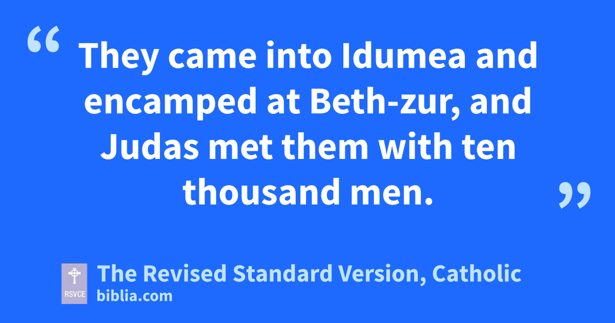 26 Those of the foreigners who escaped went and reported to Lysias all that had happened. 27 When he heard it, he was perplexed and discouraged, for things had not happened to Israel as he had intended, nor had they turned out as the king had commanded him. 28 But the next year he mustered sixty thousand picked infantrymen and five thousand cavalry to subdue them. 29 They came into Idumea and encamped at Beth-zur, and Judas met them with ten thousand men.