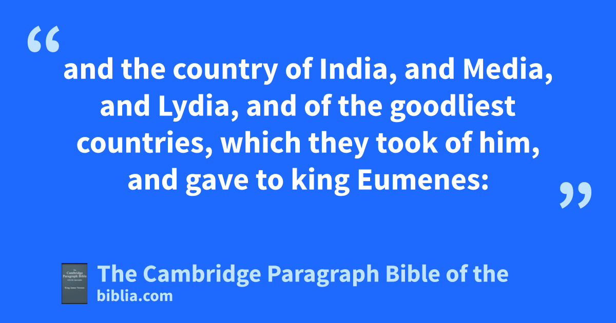 VIII. Now Judas had heard of the fame of athe Romans, that they were mighty and valiant men, and such as would lovingly accept all that joined themselves unto them, and make a league of amity with all that came unto them; 2 and that they were men of great valour. It was told him also of their wars and noble acts which they had done amongst the * bGalatians, and how they had conquered them, and brought them under tribute; 3 and what they had done in the country of Spain, for the winning of the mines of the silver and gold which is there; 4 and that by their policy and patience they had conquered * all the place, though it were very far from them; and the kings also that came against them from the uttermost part of the earth, till they had discomfited them, and given them a great overthrow, so that the rest did give them tribute every year: 5 besides this, how they had discomfited in battle Philip, and Perseus, king of the * Citims, with others that lift up themselves against them, and had overcome them: 6 how also Antiochus the great king of cAsia, that came against them in battle, having an hundred and twenty delephants, with horsemen, and chariots, and a very great army, was discomfited by them; 7 and how they took him alive, and covenanted that he and such as reigned after him should pay a great tribute, and give ehostages, and that which was agreed upon, 8 and the country of India, and Media, and Lydia, and of the goodliest countries, which they took of him, and gave to king Eumenes: 9 moreover how the Grecians had determined to come and destroy them; 10 and that they, having knowledge thereof, sent against them a certain captain, and fighting with them eeslew many of them, and carried away captives their wives and their children, and spoiled them, and took possession of their lands, and pulled down their strong holds, and brought them to be their servants unto this day: 11 it was told him besides, how they destroyed and brought under their dominion all other kingdoms and isles that at any time resisted them; 12 but with their friends and such as relied upon them they kept amity: and that they had conquered kingdoms both far and nigh, insomuch as all that heard of their name were afraid of them: 13 also that, whom they would help to a kingdom, those reign; and whom again they would, they displace: finally, that they were greatly exalted: 14 yet for all this none of them fwore a crown, or was clothed in purple, to be magnified thereby: 15 moreover how they had made for themselves a isenate house, wherein three hundred and twenty men sat in council daily, consulting alway for the people, to the end they might be well ordered: 16 and that they committed their government to ffone man every year, who ruled over all their country, and that all were obedient to that one, and that there was neither envy nor emulation among them.