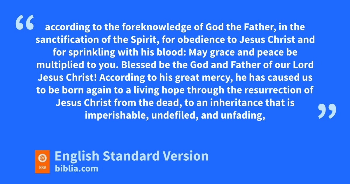 13 Therefore, gpreparing your minds for action,2 and hbeing sober-minded, set your hope fully on the grace that will be brought to you at the revelation of Jesus Christ. 14 As obedient children, ido not be conformed to the passions jof your former ignorance, 15 but kas he who called you is holy, you also be holy lin all your conduct, 16 since it is written, m“You shall be holy, for I am holy.” 17 And if you ncall on him as Father who ojudges pimpartially according to each one’s deeds, conduct yourselves qwith fear throughout the time of your exile, 18 knowing that you rwere ransomed from sthe futile ways inherited from your forefathers, not with perishable things such as silver or gold, 19 but twith the precious blood of Christ, like that of ua lamb vwithout blemish or spot. 20 He was foreknown before the foundation of the world but wwas made manifest xin the last times for the sake of you 21 ywho through him are believers in God, zwho raised him from the dead and agave him glory, so that your faith and hope are in God.