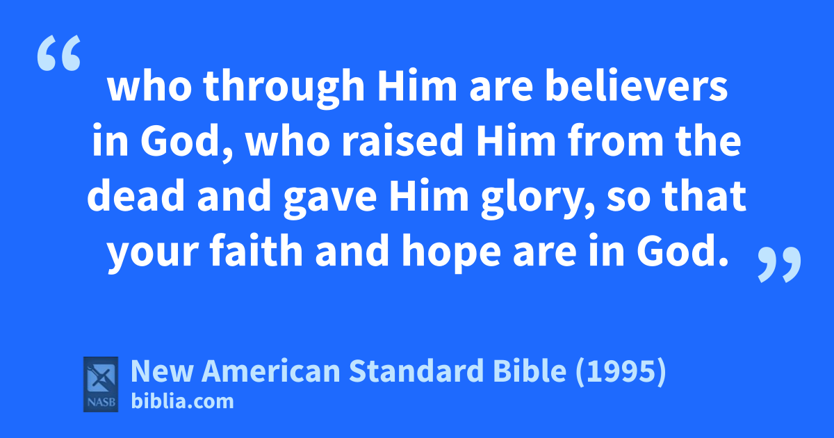 21 who through Him are abelievers in God, who raised Him from the dead and bgave Him glory, so that your faith and chope are in God.