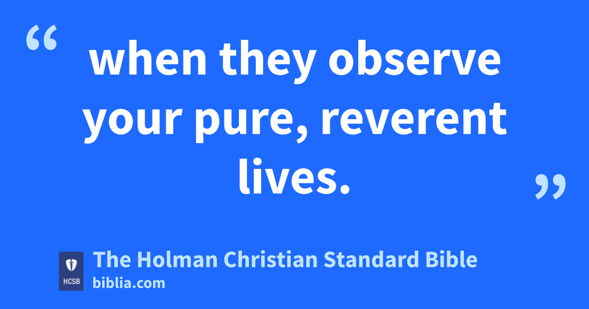 3 In the same way, wives, f submit yourselves to your own husbands so that, even if some disobey the Christian message, g they may be won over h i without a message by the way their wives live j 2 when they observe your pure, reverent lives. k 3 Your beauty should not consist of outward things like elaborate hairstyles and the wearing of gold ornaments l or fine clothes. m 4 Instead, it should consist of what is inside n the heart o with the imperishable quality of a gentle p and quiet q spirit, which is very valuable in God’s eyes. 5 For in the past, the holy r women who put their hope s in God also beautified themselves in this way, submitting to their own husbands, 6 just as Sarah t obeyed Abraham, calling him lord. You have become her children when you do what is good and are not frightened by anything alarming. u