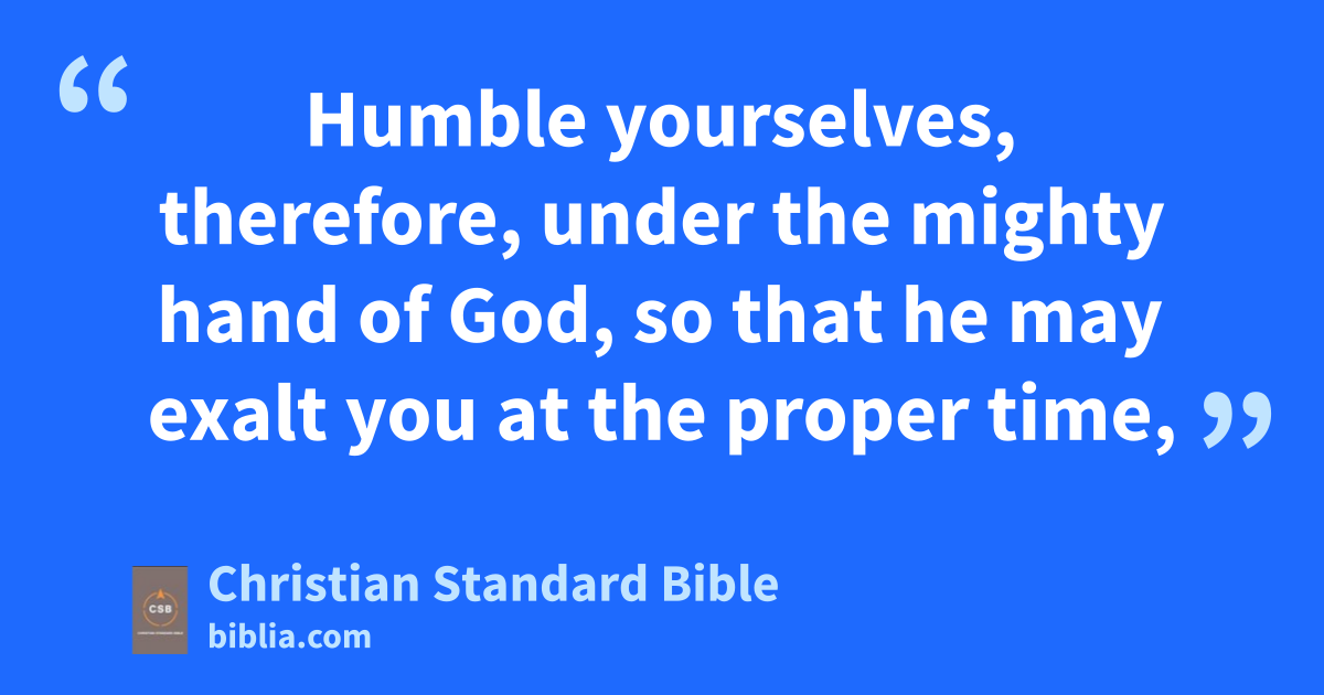6 Humblep yourselves, therefore, under the mighty handq of God, so that he may exalt you at the proper time, 7 casting all your cares on him, because he cares about you.r 8 Be sober-minded,s be alert.t Your adversary the devilu is prowling around like a roaring lion, looking for anyone he can devour. 9 Resist him,v firm in the faith, knowing that the same kind of sufferings are being experienced by your fellow believers throughout the world.