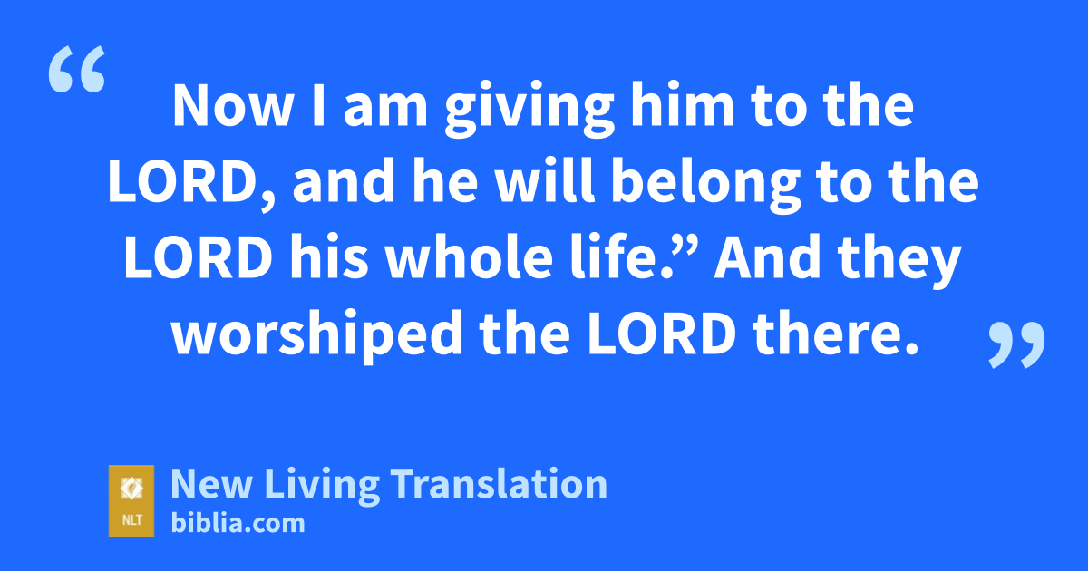 24 When the child was weaned, Hannah took him to the Tabernacle in Shiloh. They brought along a three-year-old bull* for the sacrifice and a basket* of flour and some wine. 25 After sacrificing the bull, they brought the boy to Eli. 26 “Sir, do you remember me?” Hannah asked. “I am the very woman who stood here several years ago praying to the Lord. 27 I asked the Lord to give me this boy, and he has granted my request. 28 Now I am giving him to the Lord, and he will belong to the Lord his whole life.” And they* worshiped the Lord there.