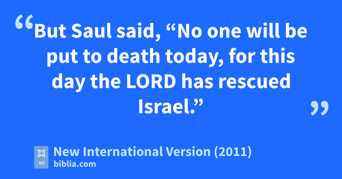 13 But Saul said, “No one will be put to death today,g for this day the Lord has rescuedh Israel.”