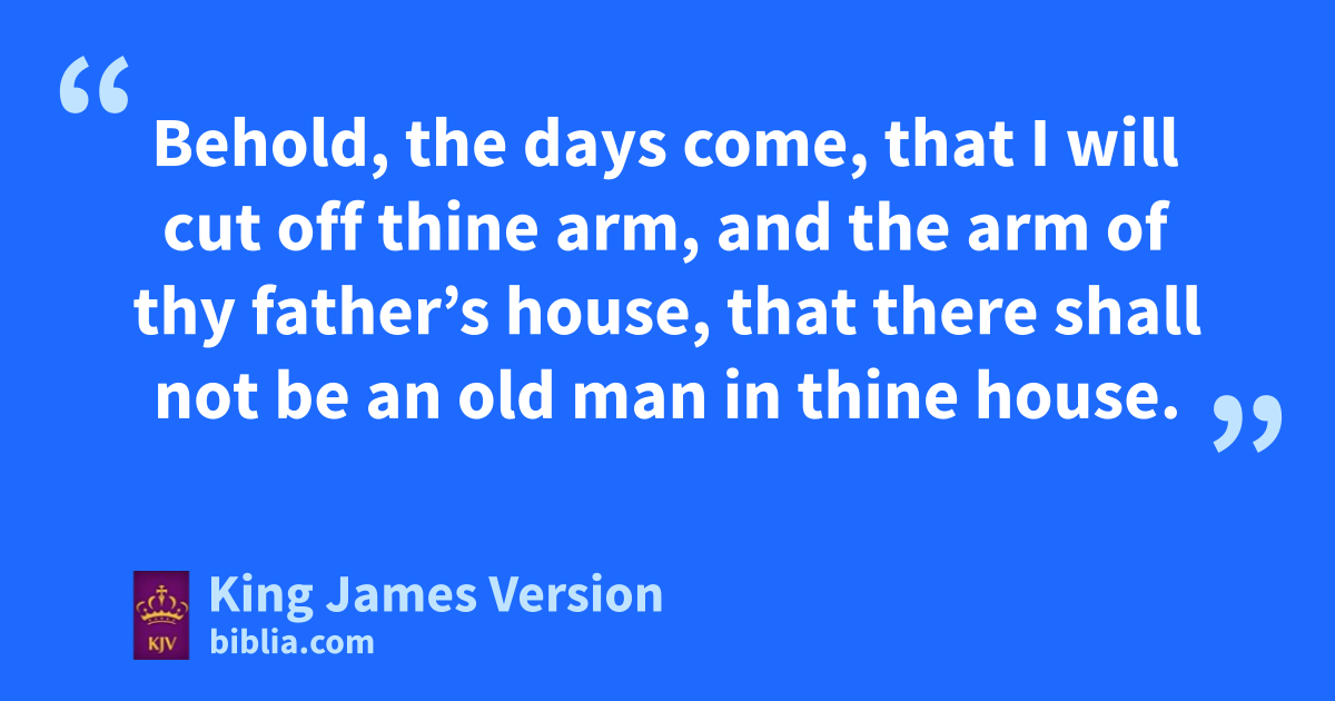 27 sAnd there came a man of God unto Eli, and said unto him, Thus saith the Lord, tDid I plainly appear unto the house of thy father, when they were in Egypt in Pharaoh’s house? 28 And did I uchoose him out of all the tribes of Israel to be my priest, to offer upon mine altar, to burn incense, to wwear an ephod before me? and xdid I give unto the house of thy father all the offerings made by fire of the children of Israel? 29 Wherefore ykick ye at my sacrifice and at mine offering, which I have commanded in my zhabitation; and honourest thy sons above me, to make yourselves fat with the chiefest of all the offerings of Israel my people? 30 Wherefore the Lord God of Israel saith, aI said indeed that thy house, and the house of thy father, should walk before me for ever: but now the Lord saith, bBe it far from me; for them that honour me cI will honour, and dthey that despise me shall be lightly esteemed. 31 Behold, ethe days come, that I will cut off thine arm, and the arm of thy father’s house, that there shall not be an old man in thine house. 32 And thou shalt see ||an enemy in my habitation, in all the wealth which God shall give Israel: and there shall not be fan old man in thine house for ever. 33 And the man of thine, whom I shall not cut off from mine altar, shall be to consume thine eyes, and to grieve thine heart: and all the increase of thine house shall die †in the flower of their age. 34 And this shall be ga sign unto thee, that shall come upon thy two sons, on Hophni and Phinehas; hin one day they shall die both of them. 35 And iI will raise me up a faithful priest, that shall do according to that which is in mine heart and in my mind: and kI will build him a sure house; and he shall walk before lmine anointed for ever. 36 And it shall come to pass, that every one that is left in thine house shall come and crouch to him for a piece of silver and ma morsel of bread, and shall say, †Put me, I pray thee, into ||one of the priests’ offices, that I may eat a piece of bread.