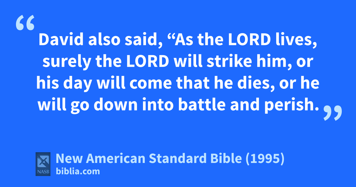 10 David also said, “As the Lord lives, asurely the Lord will strike him, or bhis day will come that he dies, or che will go down into battle and perish.