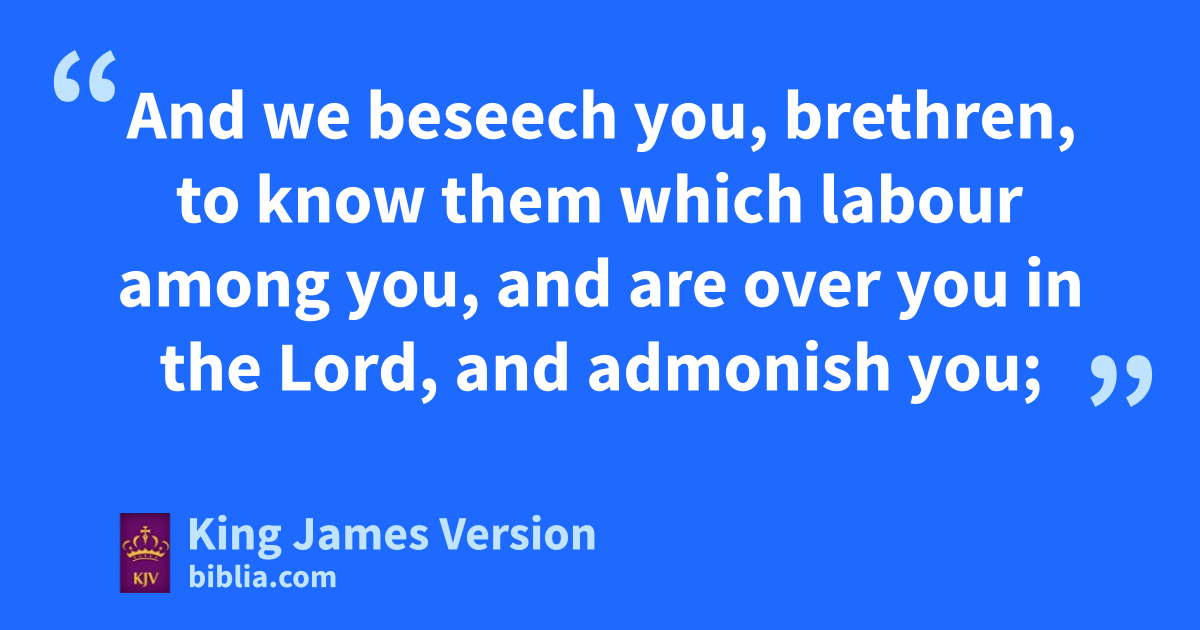 12 And we beseech you, brethren, ato know them which labour among you, and bare over you in the Lord, and cadmonish you; 13 And to esteem them very highly in love for their work’s sake. And dbe at peace among yourselves. 14 Now we ||exhort you, brethren, cwarn them that are ||unruly, ecomfort the feebleminded, fsupport the weak, gbe patient toward all men. 15 hSee that none render evil for evil unto any man; but ever ifollow that which is good, both jamong yourselves, and to all men. 16 klRejoice evermore. 17 kmPray nwithout ceasing. 18 oIn every thing give thanks: for this is pthe will of God in Christ Jesus concerning you. 19 qQuench not the Spirit. 20 Despise not rprophesyings. 21 sProve all things; hold fast that which is good. 22 tAbstain from all appearance of evil. 23 And uthe very God of peace wsanctify you wholly; and I pray God your whole xspirit and xsoul and body ybe preserved zblameless aunto the coming of our Lord Jesus Christ. 24 bFaithful is che that calleth you, who also will do it.
