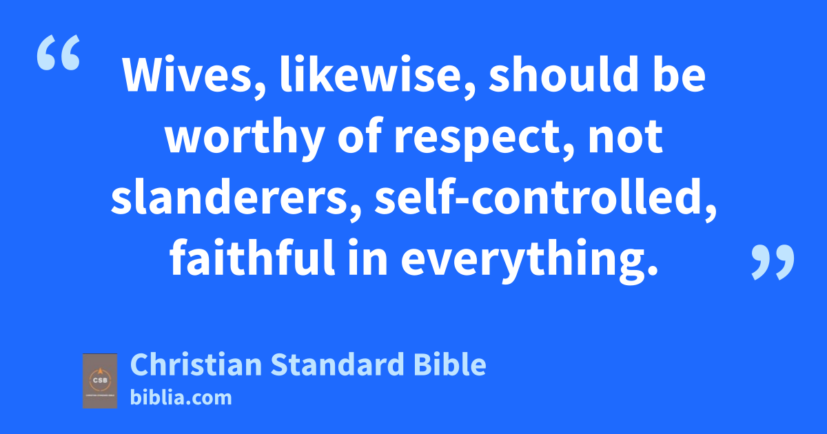 8 Deacons,p likewise, should be worthy of respect, not hypocritical, not drinking a lot of wine, not greedy for money, 9 holding the mystery of the faithq with a clear conscience.r 10 They must also be tested first; if they prove blameless, then they can serve as deacons. 11 Wives,C,s likewise, should be worthy of respect, not slanderers, self-controlled,t faithful in everything. 12 Deacons are to be husbands of one wife, managing their children and their own households competently. 13 For those who have served well as deacons acquire a good standing for themselves and great boldness in the faith that is in Christ Jesus.