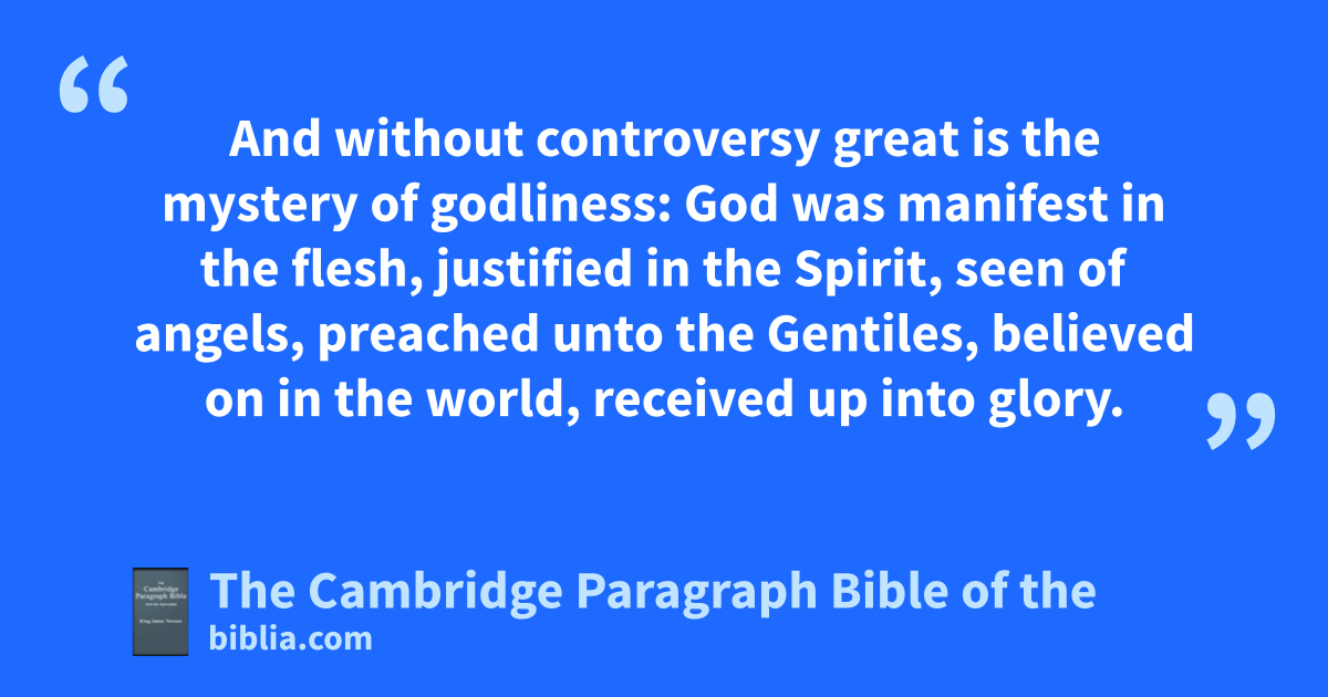 14 These things write I unto thee, hoping to come unto thee shortly: 15 but if I tarry long, that thou mayest know how thou oughtest to behave thyself in mthe house of God, which is nthe church of othe living God, the ppillar and * ground of ppthe truth. 16 And without controversy great is bthe mystery of qgodliness: God was * manifest rin the flesh, sjustified in the Spirit, tseen of angels, upreached wunto the Gentiles, xbelieved on in the world, yreceived up zinto glory.
