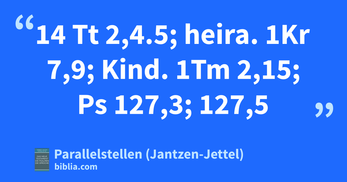 14 Tt 2,4.5; heira. 1Kr 7,9; Kind. 1Tm 2,15; Ps 127,3; 127,5