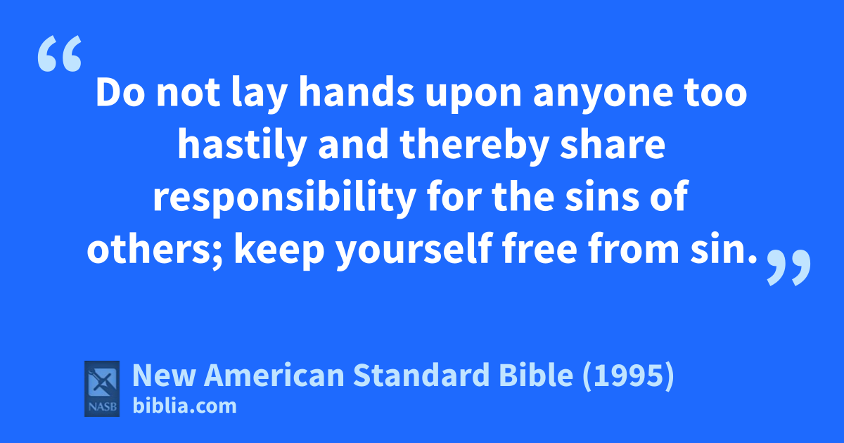 22 aDo not lay hands upon anyone too hastily and 1thereby share bresponsibility for the sins of others; keep yourself 2free from sin.