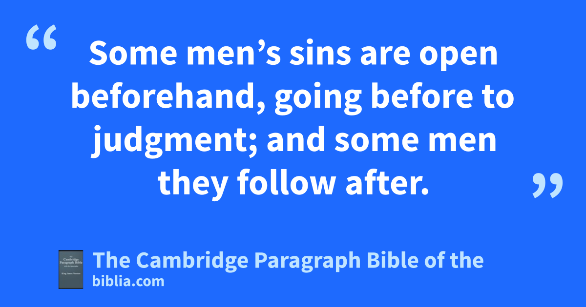 17 Let nthe elders othat rule well pbe counted worthy of qdouble rhonour, especially they who labour in the word and sdoctrine. 18 For tthe scripture saith, uThou shalt not muzzle the ox that treadeth out the corn. And, wThe labourer is worthy of his reward. 19 Against nan elder receive not an accusation, but * xbefore two or three witnesses. 20 Them that sin yrebuke zbefore all, athat others also may fear. 21 bcI charge thee cbefore God, and the Lord Jesus Christ, and the elect angels, that thou observe these things * without preferring one before another, ddoing nothing by partiality. 22 eLay hands eesuddenly on no man, neither fbe partaker of other men’s sins: gkeep thyself pure. 23 Drink no longer water, but use ha little wine ifor thy stomach’s sake and thine often infirmities. 24 Some men’s jsins are kopen beforehand, lgoing before to judgment; and some men they follow after. 25 Likewise also the good works of some are kmanifest beforehand; and mthey that are otherwise cannot be hid.