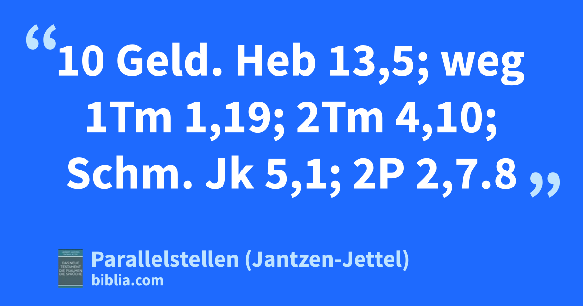 10 Geld. Heb 13,5; weg 1Tm 1,19; 2Tm 4,10; Schm. Jk 5,1; 2P 2,7.8