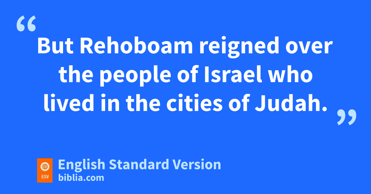 16 And when all Israel saw that the king did not listen to them, the people answered the king, “What portion have we in David? We have no inheritance in the son of Jesse. iEach of you to your tents, O Israel! Look now to your own house, David.” So all Israel went to their tents. 17 But Rehoboam reigned over the people of Israel who lived in the cities of Judah. 18 Then King Rehoboam sent jHadoram,2 who was taskmaster over the forced labor, and the people of Israel stoned him to death with stones. And King Rehoboam quickly mounted his chariot to flee to Jerusalem. 19 So Israel has been in rebellion against the house of David to this day.
