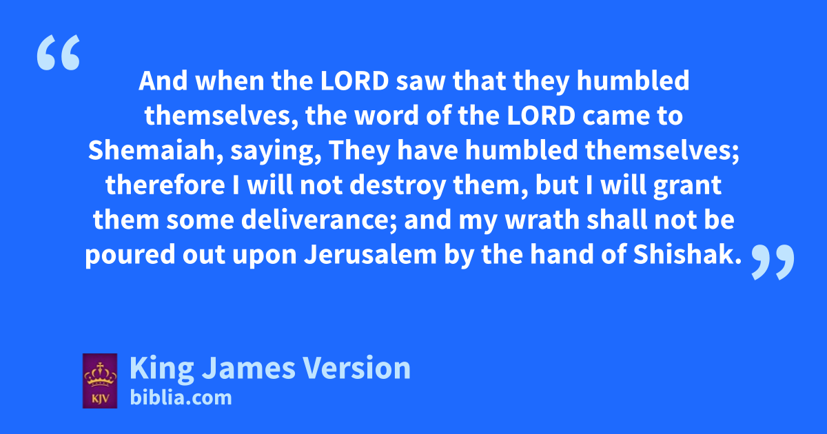 12 *And it came to pass, when Rehoboam had established the kingdom, and ahad strengthened himself, bhe forsook the law of the Lord, and all Israel with him. 2 *And it came to pass, that cin the fifth year of king Rehoboam Shishak king of Egypt came up against Jerusalem, because they had transgressed against the Lord, 3 With twelve hundred chariots, and threescore thousand horsemen: and the people were without number that came with him out of Egypt; the dLubims, the Sukkiims, and the dEthiopians. 4 And he took ethe fenced cities which pertained to Judah, and came to Jerusalem. 5 Then came fShemaiah the prophet to Rehoboam, and to the princes of Judah, that were gathered together to Jerusalem because of Shishak, and said unto them, Thus saith the Lord, gYe have forsaken me, and therefore have I also left you in the hand of Shishak. 6 Whereupon the princes of hIsrael and the king humbled themselves; and they said, iThe Lord is righteous. 7 And when the Lord saw that they jhumbled themselves, the word of the Lord came to Shemaiah, saying, They have humbled themselves; therefore I will not destroy them, but I will grant them ||some deliverance; and kmy wrath shall not be poured out upon Jerusalem by the hand of Shishak. 8 Nevertheless they shall be his servants; that they may know lmy service, and the service of the kingdoms of the countries. 9 mSo Shishak king of Egypt came up against Jerusalem, and took away the treasures of the house of the Lord, and the treasures of the king’s house; he took all: he carried away also the shields of gold nwhich Solomon had made. 10 Instead of which king Rehoboam made shields of brass, and committed them to the hands of the chief of the guard, that kept the entrance of the king’s house. 11 And when the king entered into the house of the Lord, the guard came and fetched them, and brought them again into the guard chamber. 12 And when he humbled himself, the wrath of the Lord turned from him, that he would not destroy him altogether: ||and also in Judah things went well.