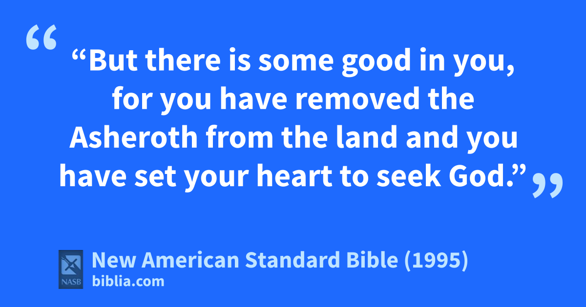 3 “But 1athere is some good in you, for byou have removed the 2Asheroth from the land and you chave set your heart to seek God.”
