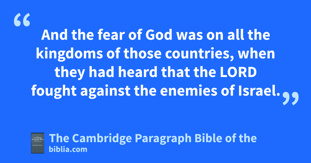 20 And they rose early in the morning, and went forth into ithe wilderness of Tekoa: and as they went forth, Jehoshaphat stood and said, Hear me, O Judah, and ye inhabitants of Jerusalem; kBelieve in the Lord your God, so shall you be established; believe his prophets, so shall ye prosper. 21 And when he had consulted with the people, he appointed singers unto the Lord, and * that should praise lthe beauty of holiness, as they went out before the army, and to say, mPraise the Lord; for his mercy endureth for ever. 22 * And when they began * to sing and to praise, the Lord set nambushments against the children of oAmmon, Moab, and mount Seir, which were come against Judah; and * they were smitten. 23 For the children of nAmmon and Moab stood up against the inhabitants of mount Seir, utterly to slay and destroy them: and when they had made an end of the inhabitants of Seir, every one helped * pto destroy another. 24 And when Judah came toward the watch tower in the wilderness, they looked unto the multitude, and behold, they were dead bodies fallen to the earth, and * none escaped. 25 And when Jehoshaphat and his people came to take away the spoil of them, they found among them in abundance both riches with the dead bodies, and qprecious jewels, which they stript off for themselves, more than they could carry away: and they were three days in gathering of the spoil, it was so much. 26 And on the fourth day they assembled themselves in the valley of * Berachah; for there they blessed the Lord: therefore the name of the same place was called, The valley of Berachah, unto this day. 27 Then they returned, every man of Judah and Jerusalem, and Jehoshaphat in the * forefront of them, to go again to Jerusalem with joy; rfor the Lord had made them to rejoice over their enemies. 28 And they came to Jerusalem with spsalteries and harps and trumpets unto the house of the Lord. 29 And tthe fear of God was on all the kingdoms of those countries, when they had heard that the Lord fought against the enemies of Israel. 30 So the realm of Jehoshaphat was quiet: for his uGod gave him rest round about.
