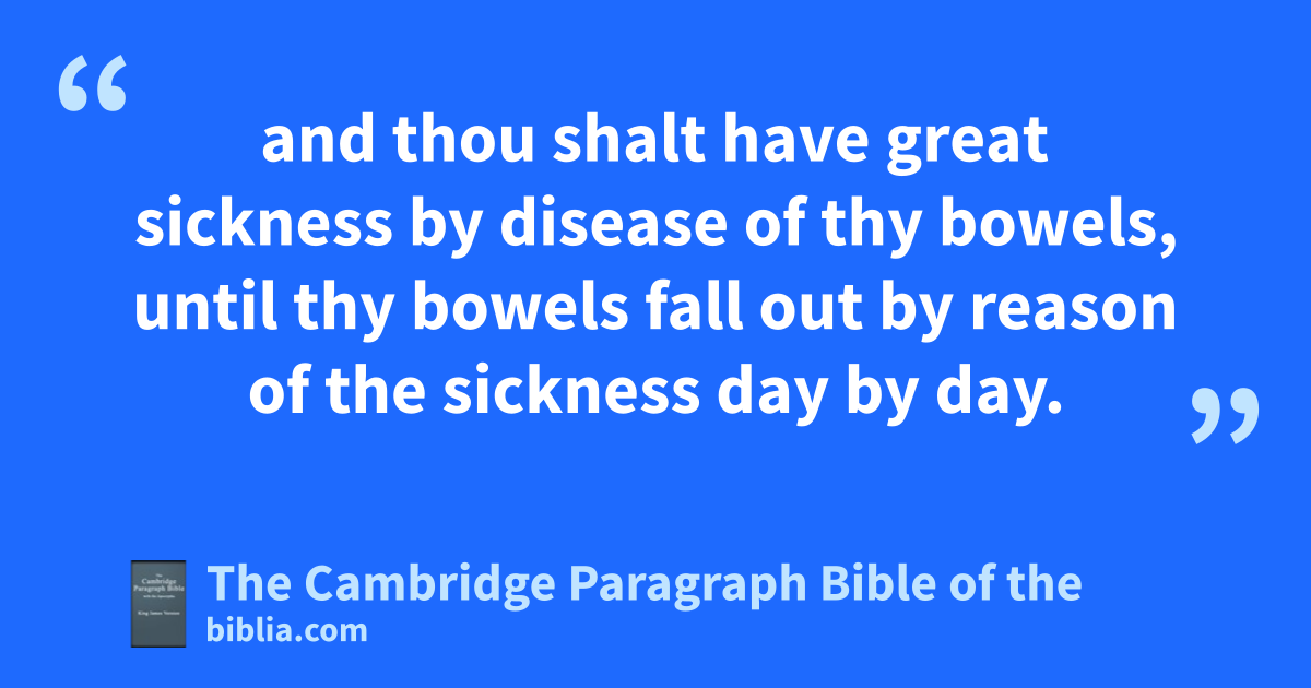 12 And there came a * writing to him from Elijah the prophet, saying, Thus saith the Lord God of David thy father, Because thou hast not walked in ithe ways of Jehoshaphat thy father, nor in kthe ways of Asa king of Judah, 13 but hast walked in lthe way of the kings of Israel, and hast gmade Judah and the inhabitants of Jerusalem to go a whoring, like to the mwhoredoms of the house of Ahab, and also hast nslain thy brethren of thy father’s house, which were obetter than thyself: 14 * behold, with * a great plague will the Lord smite thy people, and thy children, and thy wives, and all thy goods: 15 and thou shalt have great sickness by pdisease of thy bowels, until thy bowels fall out by reason of the sickness day by day. 16 Moreover the Lord qstirred up against Jehoram the spirit of the rPhilistines, and of the rArabians, that were near the * sEthiopians: 17 and they came up into Judah, and brake into it, and * carried away all the tsubstance that was found in the king’s house, and uhis sons also, and his wives; so that there was never a son left him, save x* * Jehoahaz, the youngest of his sons. 18 * And after all this the Lord smote him in yhis bowels with an incurable disease. 19 And it came to pass, that in process of time, after the end of two zyears, his bowels fell out by reason of his sickness: so he died of sore diseases. And his people made no burning for him, like athe burning of his fathers. 20 bThirty and two years old was he when he began to reign, and he reigned in Jerusalem eight years, and departed * without being desired. Howbeit they buried him in the city of David, cbut not in the sepulchres of the kings.
