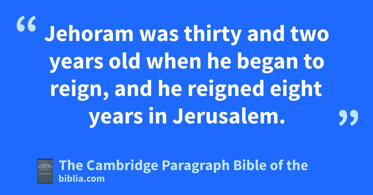 12 And there came a * writing to him from Elijah the prophet, saying, Thus saith the Lord God of David thy father, Because thou hast not walked in ithe ways of Jehoshaphat thy father, nor in kthe ways of Asa king of Judah, 13 but hast walked in lthe way of the kings of Israel, and hast gmade Judah and the inhabitants of Jerusalem to go a whoring, like to the mwhoredoms of the house of Ahab, and also hast nslain thy brethren of thy father’s house, which were obetter than thyself: 14 * behold, with * a great plague will the Lord smite thy people, and thy children, and thy wives, and all thy goods: 15 and thou shalt have great sickness by pdisease of thy bowels, until thy bowels fall out by reason of the sickness day by day. 16 Moreover the Lord qstirred up against Jehoram the spirit of the rPhilistines, and of the rArabians, that were near the * sEthiopians: 17 and they came up into Judah, and brake into it, and * carried away all the tsubstance that was found in the king’s house, and uhis sons also, and his wives; so that there was never a son left him, save x* * Jehoahaz, the youngest of his sons. 18 * And after all this the Lord smote him in yhis bowels with an incurable disease. 19 And it came to pass, that in process of time, after the end of two zyears, his bowels fell out by reason of his sickness: so he died of sore diseases. And his people made no burning for him, like athe burning of his fathers. 20 bThirty and two years old was he when he began to reign, and he reigned in Jerusalem eight years, and departed * without being desired. Howbeit they buried him in the city of David, cbut not in the sepulchres of the kings.