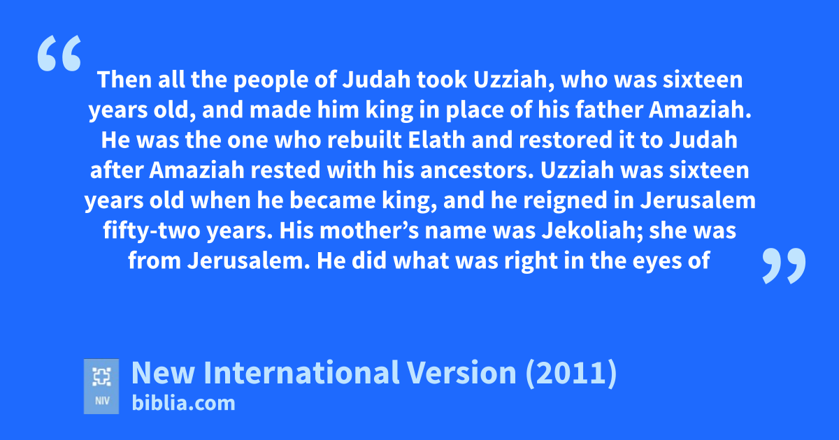 26 Then all the people of Judahf took Uzziah,a who was sixteen years old, and made him king in place of his father Amaziah. 2 He was the one who rebuilt Elath and restored it to Judah after Amaziah rested with his ancestors.