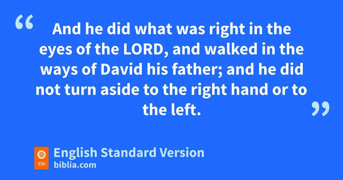 34 mJosiah was eight years old when he began to reign, and he reigned thirty-one years in Jerusalem. 2 And he did what was right in the eyes of the Lord, and walked in the ways of David his father; and he did not turn aside to the right hand or to the left. 3 For in the eighth year of his reign, while he was yet a boy, he began to seek the God of David his father, and in the twelfth year he began to purge Judah and Jerusalem of the high places, the nAsherim, and the carved and the metal images. 4 And they chopped down the altars of the Baals in his presence, and he cut down the oincense altars that stood above them. And he broke in pieces the nAsherim and the carved and the metal images, and he made dust of them and oscattered it over the graves of those who had sacrificed to them. 5 pHe also burned the bones of the priests on their altars and cleansed Judah and Jerusalem. 6 And in the qcities of Manasseh, Ephraim, and Simeon, and as far as Naphtali, in their ruins1 all around, 7 he broke down the altars and beat the nAsherim and the images rinto powder and cut down all the incense altars throughout all the land of Israel. Then he returned to Jerusalem.