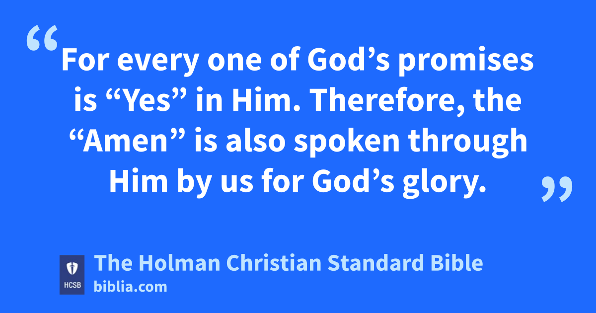 15 I planned with this confidence to come to you first, j so you could have a double benefit, k 16 and to go on to Macedonia l with your help, then come to you again from Macedonia and be given a start by you m on my journey n to Judea. o 17 So when I planned this, was I irresponsible? Or what I plan, do I plan in a purely human p q way so that I say “Yes, yes” and “No, no” simultaneously? 18 As God is faithful, r our message to you is not “Yes and no.” 19 For the Son of God, s Jesus Christ, who was preached among you by us—by me and Silvanus t u and Timothy—did not become “Yes and no”; on the contrary, a final “Yes” has come in Him. v 20 For every one of God’s promises w is “Yes” in Him. Therefore, the “* Amen” x is also spoken through Him by us for God’s glory. y 21 Now it is God who strengthens us, with you, in Christ and has anointed z us. 22 He has also sealed us and given us the Spirit as a down payment a in our hearts. b