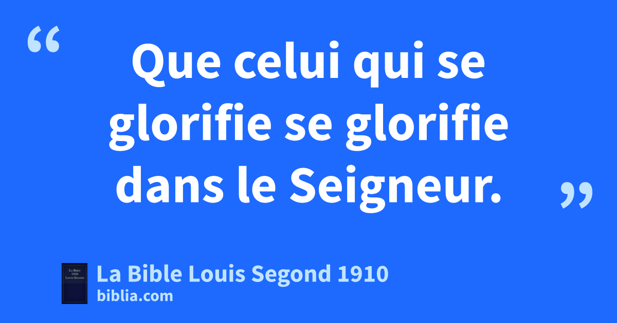 12dNous n’osons pas nous égaler ou nous comparer à quelques-uns de ceux qui se recommandent eux-mêmes. Mais, en se mesurant à leur propre mesure et en se comparant à eux-mêmes, ils manquent d’intelligence. 13Pour nous, nous ne voulons pas nous glorifier hors de toute mesure; enous prendrons, au contraire, pour mesure les limites du partage que Dieu nous a assigné, de manière à nous faire venir aussi jusqu’à vous. 14Nous ne dépassons point nos limites, comme si nous n’étions pas venus jusqu’à vous; car c’est bien jusqu’à vous que nous sommes arrivés avec l’Évangile de Christ. 15Ce n’est pas hors de toute mesure, ce n’est pas des travaux d’autrui, que nous nous glorifions; mais c’est avec l’espérance, si votre foi augmente, de grandir encore d’avantage parmi vous, selon les limites qui nous sont assignées, 16et d’annoncer l’Évangile au delà de chez vous, sans nous glorifier de ce qui a été fait dans les limites assignées à d’autres. 17fQue celui qui se glorifie se glorifie dans le Seigneur. 18gCar ce n’est pas celui qui se recommande lui-même qui est approuvé, c’est celui que le Seigneur recommande.