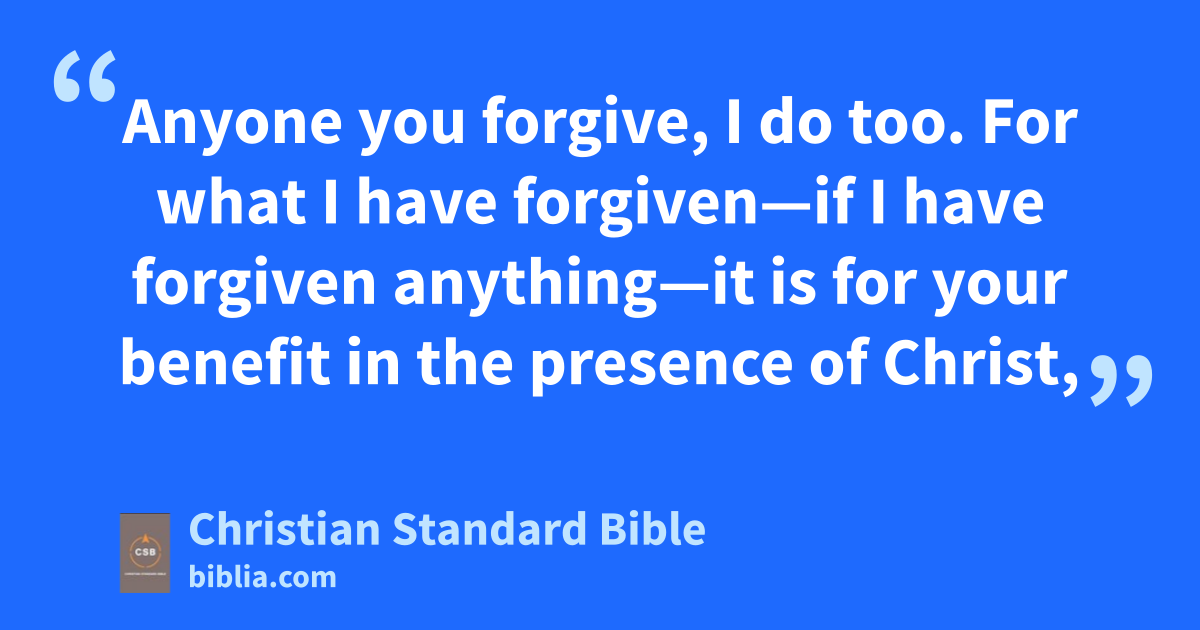 5 If anyone has caused pain, he has caused pain not so much to me but to some degree—not to exaggeratea—to all of you. 6 This punishment by the majority is sufficient for that person. 7 As a result, you should instead forgiveb and comfort him. Otherwise, he may be overwhelmed by excessive grief. 8 Therefore I urge you to reaffirm your love to him. 9 I wrote for this purpose: to test your characterc to see if you are obedientd in everything. 10 Anyone you forgive, I do too. For what I have forgiven—if I have forgiven anything—it is for your benefit in the presence of Christ, 11 so that we may not be taken advantagee of by Satan. For we are not ignorant of his schemes.