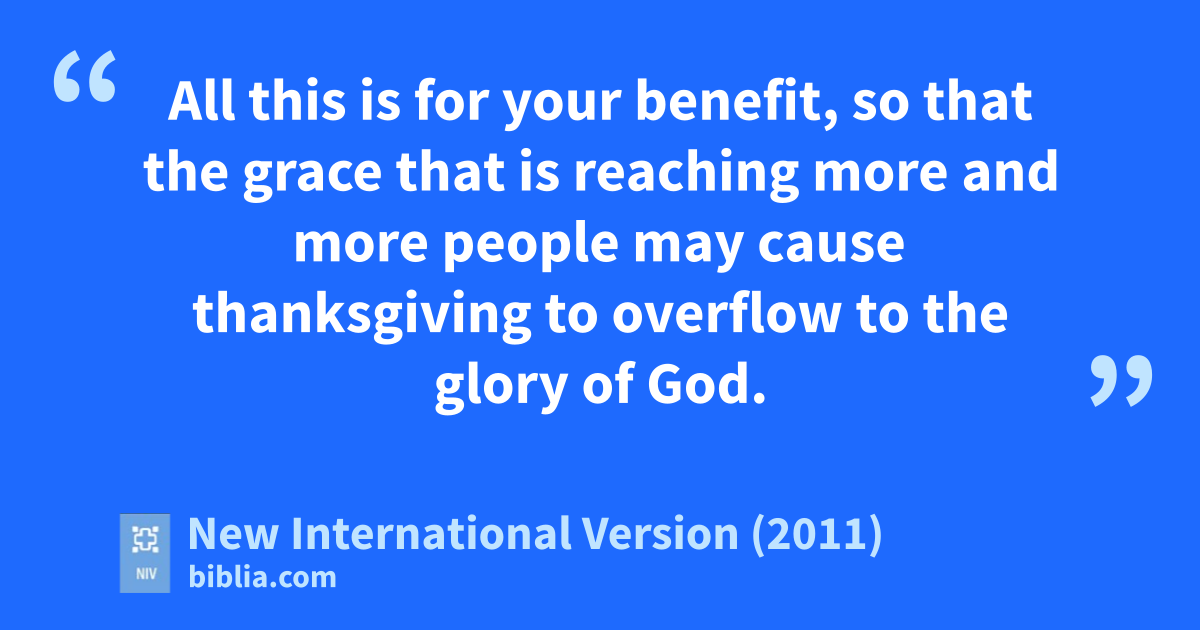 13 It is written: “I believed; therefore I have spoken.”b h Since we have that same spirit ofc faith,i we also believe and therefore speak, 14 because we know that the one who raised the Lord Jesus from the deadj will also raise us with Jesusk and present us with you to himself.l 15 All this is for your benefit, so that the grace that is reaching more and more people may cause thanksgivingm to overflow to the glory of God.