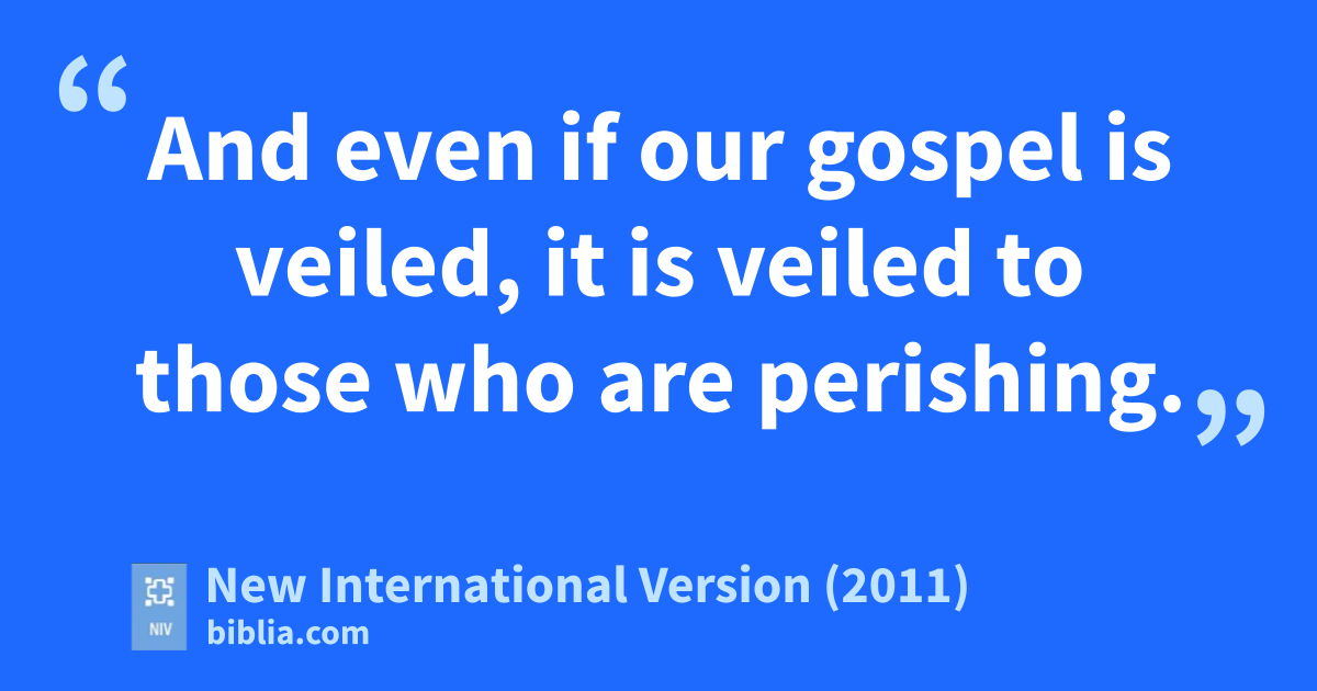 4 Therefore, since through God’s mercyd we have this ministry, we do not lose heart.e 2 Rather, we have renounced secret and shameful ways;f we do not use deception, nor do we distort the word of God.g On the contrary, by setting forth the truth plainly we commend ourselves to everyone’s conscienceh in the sight of God. 3 And even if our gospeli is veiled,j it is veiled to those who are perishing.k 4 The godl of this agem has blindedn the minds of unbelievers, so that they cannot see the light of the gospel that displays the glory of Christ,o who is the image of God.p 5 For what we preach is not ourselves,q but Jesus Christ as Lord,r and ourselves as your servantss for Jesus’ sake. 6 For God, who said, “Let light shine out of darkness,”a t made his light shine in our heartsu to give us the light of the knowledge of God’s glory displayed in the face of Christ.v