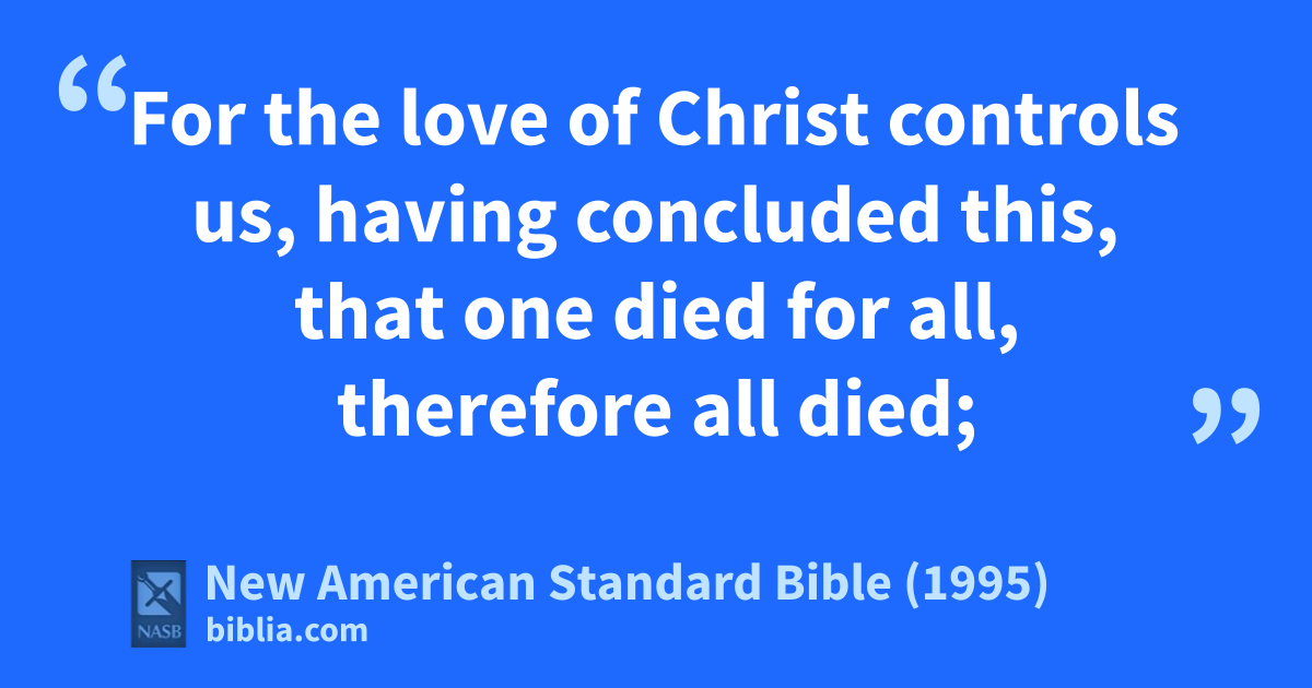 14 For the love of Christ acontrols us, having concluded this, that bone died for all, therefore all died;