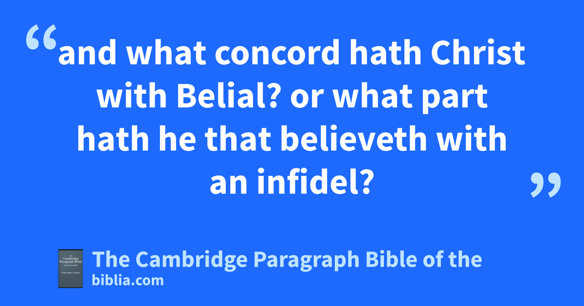 11 O ye gCorinthians, our mouth is open unto you, hour iheart is enlarged. 12 Ye are not kstraitened in us, but lye are kstraitened in your own bowels. 13 Now for a recompence in the same, (I speak as unto mmy children,) be ye also enlarged. 14 nBe ye not unequally yoked together with unbelievers: for owhat fellowship hath righteousness with unrighteousness? and pwhat communion qhath light with darkness? 15 and what concord hath Christ with Belial? or what part hath he that believeth with an infidel? 16 and what agreement hath the temple of God with idols? for rye are the temple of sthe living God; as God hath said, tuI will dwell in them, and walk in them; and I will be their God, and they shall be my people. 17 Wherefore xcome out from among them, and be ye separate, saith the Lord, and touch not the unclean thing; and I will receive you, 18 yand will be a Father unto you, and ye shall be my sons and daughters, saith the Lord zAlmighty.