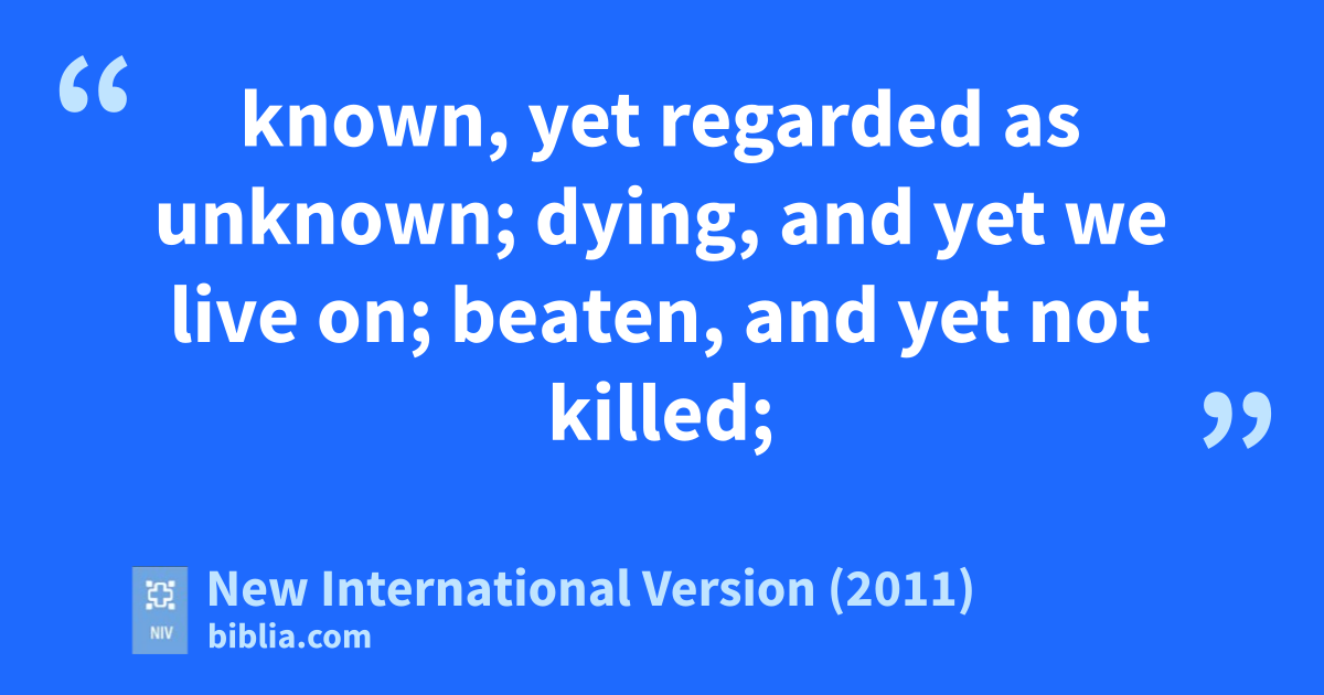 3 We put no stumbling block in anyone’s path,a so that our ministry will not be discredited. 4 Rather, as servants of God we commend ourselves in every way: in great endurance; in troubles, hardships and distresses; 5 in beatings, imprisonmentsb and riots; in hard work, sleepless nights and hunger;c 6 in purity, understanding, patience and kindness; in the Holy Spiritd and in sincere love;e 7 in truthful speechf and in the power of God;g with weapons of righteousnessh in the right hand and in the left; 8 through glory and dishonor,i bad reportj and good report; genuine, yet regarded as impostors;k 9 known, yet regarded as unknown; dying,l and yet we live on;m beaten, and yet not killed; 10 sorrowful, yet always rejoicing;n poor, yet making many rich;o having nothing,p and yet possessing everything.q