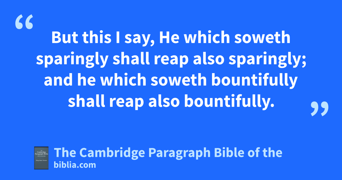 IX. For as touching athe ministering to bthe saints, it is superfluous for me to write to you: 2 for I know cthe forwardness of your mind, dfor which I boast of you to them of Macedonia, that eAchaia was ready fa year ago; and your zeal hath provoked very many. 3 Yet have I sent gthe brethren, lest hour boasting of you should be in vain iin this behalf; that, jas I said, ye may be ready: 4 lest haply if kthey of Macedonia come with me, and find you unprepared, we (that we say not, you) should be ashamed in lthis same mconfident boasting. 5 Therefore I thought it necessary to exhort gthe brethren, that they would go before unto you, and make up beforehand your * bounty, * whereof ye had notice before, that the same might be ready, nas a matter of * bounty, and onot as of covetousness. 6 But this I say, pHe which soweth sparingly shall reap also sparingly; and he which soweth bountifully shall reap also bountifully. 7 Every man according as he purposeth in his heart, so let him give; qnot rgrudgingly, or of necessity: for sGod loveth a cheerful giver. 8 And ptGod is able to make all ugrace abound towards you; that ye, always having all sufficiency in all things, may abound to every xgood work: 9 (as it is written, yHe hath dispersed abroad; he hath given to the poor: his righteousness remaineth for ever. 10 Now he that zministereth seed to the sower both minister bread for your food, and multiply your seed sown, and increase athe fruits of your brighteousness;) 11 being enriched in every thing to all * * bountifulness, which causeth cthrough us thanksgiving to God. 12 For adthe administration of this service not only supplieth ethe want of the saints, but is abundant also cfby many thanksgivings unto God; 13 whiles by the gexperiment of this dministration they hglorify God for your professed isubjection unto the gospel of Christ, and for your jliberal distribution unto them, and unto all men; 14 and by their prayer for you, which long after you for the exceeding lgrace of God in you. 15 Thanks be unto lGod for his unspeakable gift.