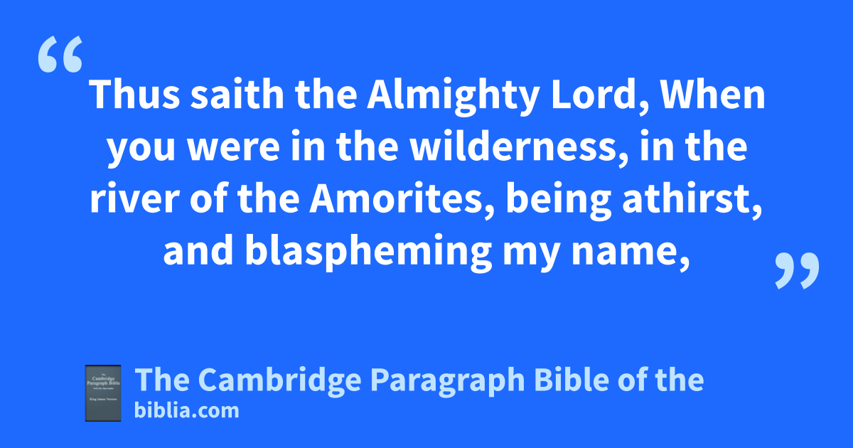 4 And the word of the Lord came unto me, saying, 5 Go thy way, and dshew my people their sinful deeds, and their children their wickedness which they have done against me; that they may tell their children’s children: 6 because the sins of their fathers are increased in them: for they have forgotten me, and have offered unto strange gods. 7 Am not I even he that ebrought them out of the land of Egypt, from the house of bondage? but they have provoked me unto wrath, and despised my counsels. 8 fPull thou off then the hair of thy head, and cast all evil upon them, for they have not been obedient unto my law, but git is a rebellious people. 9 hHow long shall I forbear them, into whom I have done so much tgood? 10 Many kings have I destroyed for their sakes; iPharaoh with his servants and all his power have I smitten down. 11 jAll the nations have I destroyed before them, and in the east I have scattered the people of ktwo provinces, even lof Tyrus and Sidon, and have slain all their enemies. 12 Speak thou therefore unto them, saying, Thus saith the Lord, 13 mI led you through the sea, and in the beginning gave you a large and safe * passage; I gave you nMoses for a leader, and oAaron for a priest. 14 pI gave you light in a pillar of fire, and great wonders have I done among you; qyet have you forgotten me, saith the Lord. 15 Thus saith the rAlmighty Lord, The squails were as a token for you; I gave you tents for your safeguard: nevertheless you murmured there, 16 and triumphed not in my name for the destruction of your enemies, but ever to this day do ye yet murmur. 17 Where are the tbenefits that I have done for you? when you were hungry and thirsty in the wilderness, did you not cry unto me, 18 saying, uWhy hast thou brought us into this wilderness to kill us? vit had been better for us to have served the Egyptians, than to die in this wilderness. 19 Then had I pity upon your mournings, and wgave you manna to eat; so xye did eat angels’ bread. 20 yWhen ye were thirsty, did I not cleave the rock, and waters flowed out * to your fill? for the heat I covered you with the leaves of the trees. 21 I divided amongst you za fruitful land, I cast out the Canaanites, the Pherezites, and the Philistines, before you: awhat shall I yet do more for you? saith the Lord. 22 Thus saith the bAlmighty Lord, When you were in the wilderness, * in the river of the Amorites, being athirst, and blaspheming my name, 23 I gave you not fire for your blasphemies, but ccast a tree in the water, and made the river sweet. 24 What shall I do unto thee, O Jacob? dthou, Juda, ewouldest not obey me: eI will turn me to other nations, and unto those will I give my name, that they may keep my statutes. 25 fSeeing ye have forsaken me, I will forsake you also; when ye desire me to be gracious unto you, I shall have no mercy upon you. 26 gWhensoever you shall call upon me, I will not hear you: for ye have defiled your hands with blood, and hyour feet are swift to commit manslaughter. 27 Ye have not as it were forsaken me, but your own selves, saith the Lord. 28 Thus saith the bAlmighty Lord, Have I not prayed you as a father his sons, as a mother her daughters, and a nurse her young babes, 29 that ye would be my people, * and I should be your God; that ye would be my children, and I should be your father? 30 iI gathered you together, as a hen gathereth her chickens under her wings: but now, what shall I do unto you? I will cast you out from my face. 31 kWhen you offer unto me, I will turn my face from you: for your solemn feastdays, your new moons, and your circumcisions, have I forsaken. 32 lI sent unto you my servants the prophets, whom ye have taken and slain, and torn their bodies in pieces, whose blood I will require of your hands, saith the Lord. 33 Thus saith the bAlmighty Lord, mYour house is desolate, nI will cast you out noas the wind doth stubble. 34 And pyour children shall not be fruitful; for they have despised my commandment, and done the thing that is evil before me. 35 Your houses will I give to qa people that shall come; which not having heard of me yet shall believe me; to whom I have shewed no signs, yet they shall do that I have commanded them. 36 They have seen no prophets, yet they shall call their sins to remembrance, and acknowledge them. 37 I take to witness the grace of qthe people to come, whose little ones rejoice in gladness: and rthough they have not seen me with bodily eyes. yet in spirit they believe the thing that I say.